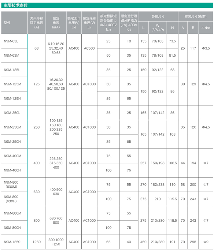 N9M系列塑料外殼式斷路器